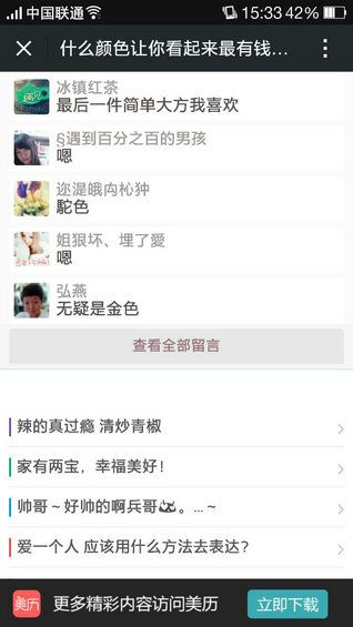 大家可以看这个H5页面,大家试试看点击底部的“立即下载”就可以通过腾讯应用宝很方便的下载安卓app了。这给了我们一个机会,就是当我们想推App的时候,把App上传到应用宝,把应用宝地址直接粘贴到文章底部的阅读原文里,写一篇2页左右介绍性的文章,吸引到用户后直接引导点击底部阅读原文打开App进行安装。5页面一样可以在文章顶部底部加”下载“链接,点击后到应用宝安装。这是微信上做App推广转化率最高的方式了,转化率大概在1%~5%,看软文的水平,同时游戏会高一些。 我们整理了一个搜集网络上各种文案的博客:http://wz.loumou.com/大家有兴趣可以看看,欢迎推荐优秀的软文给我们,广告文案其实是这样的你提交一个文案给微信主,微信主会按10万粉丝发一篇文章多少钱和你算费用 听众:软文和硬广的比例,多少比较合适? 张:一般的价位在2000~5000元发一篇10万粉丝号的头条文章,如果你是软文,大概2000~3000,低的也有1500,如果你是硬广,至少3000以上 也有不少A货手表在发,不过腾讯会定期政治,微信主现在不敢接这类广告了,接了会封号,但也有顶风作案的,价格也超高 听众:产品的应用模式比较少,属性偏硬,如何更好的让受众接受? 张:我原来也这么认为,我觉得产品就直接发布产品描述信息才有效果,软文一般都没有效果.我们也接不少产品客户的广告,同时我们也分享给我们的微信主朋友们去发,结果大家都不接(只有假粉丝的微信主什么文案都接),结果文案派发不出去,只能想软文,但我们发现软文其实效果并不差,我来分享一个文案给大家。 大家觉得这篇文案写得如何,这个产品大家可以点进淘宝店看看,销量做的非常高,主要就靠微信。其实软文转化率如何,产品属性已经决定了90%,微信里流行大家传播养生知识,因为分享的人会觉得分享了一些有意义,大家都能接受的内容。 顺着这样的内容去引出自己的产品。或者特别精致的物件,比如手表,在微信一直卖的就比较好现在流行佛珠,说是1000元打超低价50~200卖,其实成本5元的那种。要么用户看了自己很容易被图片吸引了购买,要么是用户看了愿意为自己长辈朋友购买。 听众:那那种属性暂时还不能让普通人接受的产品呢? 张:那你想想看能否从新奇创意角度出发来写文章,微信里也经常传播一些猎奇的文章,和这类题材结合上 大家可以参考参考新媒体排行榜:http://url.cn/ZpJELv 听众:原创家具以及创意居家产品的呢? 张:这个排行榜里有第三方总结的TOP500微信主,你看看哪类微信主和你创意家居的题材比较相近,你可以和这类微信主联系联系,比如排名103的”创意家居”:http://url.cn/TB7Fbn,或者如果你认识一些创意家居的同行,可能大家各自经营着各自风格的创意家居类的产品,建议你们找10个左右结成一个联盟,一起来推一个公众号。订阅号一天可以发8篇内容,你一家做一个号迟早没内容,还要自己到网络上摘抄,不如10家大家一起做,每天都能分享自己一篇左右的内容,同时广告费大家均摊了。现在很多这样的联盟,你以为是一个个人做的一个号,其实背后是10~20个商家一起联合做的。我也很喜欢那种有文化感 创意 生活味道的设计文章,林子建议你们可以试试自己做一个号。 怎么看别人的微信订阅号粉丝量粉丝真假 现在其实已经很明朗,要做移动端广告就是做微信广告,但广点通广告太贵。找微信主做广告很多是刷量,怎么识别真假,比如做童装的想推广他的童装产品,你可能会找到一批微信订阅号,看起来阅读量很大,粉丝数不清楚对方说有20万,你怎么知道真假呢?首先肯定的是微信阅读量是可以刷的而且很便宜 大家可以试试在淘宝搜索”微信 阅读 真实 大家可以在淘宝上看到,所以很多做微信营销的后来者失败后转做假粉丝,你首先问他粉丝数多少,微信订阅号每天第一篇文章的阅读数应该约等于粉丝数/5,如果远离这个数值,一般都是假的,另外如果一个微信主有的文章阅读很高,有的阅读很低,就是刷的。