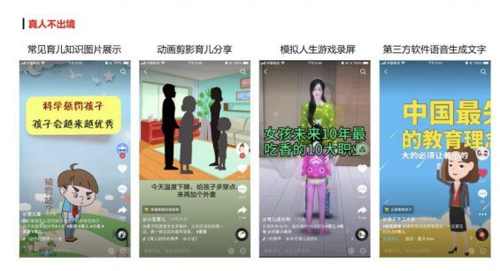3、确定自己视频的呈现形式 分析完同行业爆款视频以后,接下来就要确定自己做号的话要用哪种形式,因为不同的视频展现形式决定了视频的制作周期、更新频率以及后期的转化。 比如说育儿领域,通过搜索可以看到目前抖音常见的视频形式主要分为两种:真人出镜和真人不出境。 其中真人出镜又包括以下四种形式: 01、常见育儿知识分享 02、明星育儿分享 03、专业博主育儿知识分享 04、搬运育儿专家视频讲座分享 真人不出境包括以下这四种形式: 01、常见育儿知识图片展示 02、动画剪影育儿分享 03、模拟人生游戏录屏人物动作,底部BGM配其他热门育儿视频 04、第三方软件将热门育儿视频生成文字