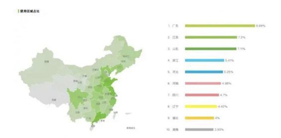 而从年龄上来看,男性用户略多于女性用户;用户主要分布在东部沿海和中西部经济较为发达地区,目前使用人群也有下沉的趋势。(数据来源:2019年初公开数据)