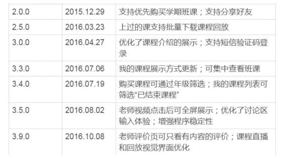 4.1 提升用户数 在提升用户数,增强品牌、口碑效应方面,猿辅导做了哪些动作呢 一:在提升用户知名度上,2015年,以嘉宾参与录制节目的形式投放《天天向上》;2018年,猿辅导成为了《最强大脑》的合作方,借助自身的学生流量为《最强大脑》提供海选平台;2019年,猿辅导成为《最强大脑》新一季唯一的官方报名和选拔通道,负责初试和复试,更参与了出题环节,从选手报名、在线选拔到节目赛题系统开发,全程参与其中。2020年,猿辅导先后成为CCTV《中国诗词大会》(第五季)、中国铁路官方App“掌上高铁”运营方国铁吉讯的合作伙伴。从线上电视节目,到线下交通出行,全方位的广告投放提高其品牌知名度。 二:在口碑方面,提高家长的用户体验度:家长可以在孩子上完直播课以后,收到课堂报告,查看课堂表现;课后习题批改完成后可以收到习题报告,查看课后习题表现;考试结束后收到考试报告,查看考试表现。全面的了解学生学习情况。这是不论报辅导班还是线下培训机构都不能相比的。 4.2 提升转化率 通过各种方式引导用户来到平台之后,产生付费行为的用户,才是有效用户。它是怎么做,引导用户来付费,从而提高转化率的: 打开app首页可以看到,猿辅导为用户提供了内容丰富的免费、低价体验课如 高三全科重难点专题课收费只要1元钱,名家思想启迪智慧课0元观看、高三免费直播课等,让学生低成本试学课程,免除用户对课程质量、学习效果的担忧。这对于增强信任感是十分关键的。 另一方面,设置新人赠优惠券、邀请好友注册获赠猿币的方法鼓励用户消费,提高用户的平台参与度和积极性。 最后,在用户购买核心专项课之前,可以免费试听,对于提高用户的购买意愿很有帮助。另外猿辅导支持购买后不满意退课行为,用户听完第一节课,如果不满意,在第二节课前可以退课,免除了购买课程之前的后顾之忧。 4.3 定价策略 在定价方面,首先猿辅导采用推出大量1元低单价课程的方式吸引用户,提高用户对平台课程产品的信任感。降低用户首次付费的风险成本,为用户二次付费做好铺垫。 再次,猿辅导主推大班双师团课,团课的课时以30节课为主。团课的价格,从几百元到一千多元不等,算下来,每节课花费才几十元。相当于以极低的价格享受到优质老师的指导。相比外面动辄几千块、上万块的补习班,绝大多数家长是更愿意去接受猿辅导的定价的。 综上来看,猿辅导在提升用户数、提升转化率、定价策略方面,都有不错的表现。那么营收越来越好就是情理之中的事了。 五 、产品迭代分析 笔者通过对猿辅导的版本迭代进行整理,探究其产品迭代的节奏,下面是猿辅导所有核心版本的整理情况: