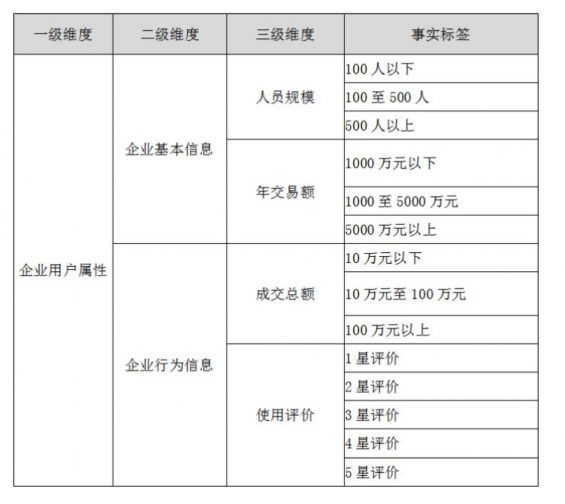 2.2 模型标签 模型标签,由一个或多个事实标签的组合而成。如“企业用户价值等级”模型标签,由采购总数量、采购总金额、结算周期等事实标签组合而成的。