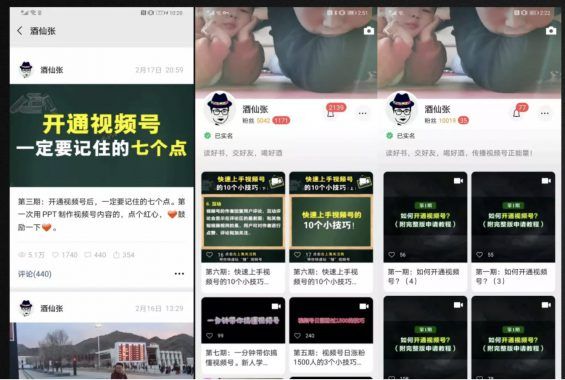 知乎的搜索也比较高,像头条号企鹅号新浪微博更多是在做辅助,那我希望其实打造酒仙张的IP这个名字,其实也就是我在做视频号了之后,我想把我的IP统一起来,才起了一个名字叫酒仙张,那这个IP的打造其实用非常短的时间就会让更多人去知道和了解。