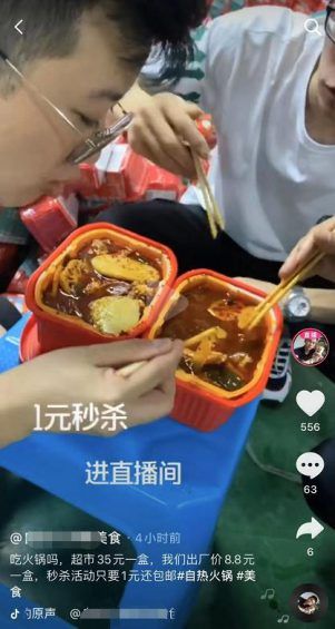 看他们吃得很香,同时,视频上写了“1元秒杀,进直播间”。 虽然这个是违规的,我也不知道这个点赞和推荐是怎么来的,抖音规则里面写得很清楚,视频上是不能写价格,写秒杀这些词语的,但是他写了,还被推荐了。 不去深究这个规则问题,反正我就是看到了那几个字,我的第一个反应是“这么便宜”? 因为商超里面是有卖的,不记得具体价格了,反正不便宜,反正不是1块钱。 刚好看头像,他们正在搞直播。 所以我就顺其自然的,带着一点好奇心,点击了直播间。 2、为什么我会在这个直播间购买?
