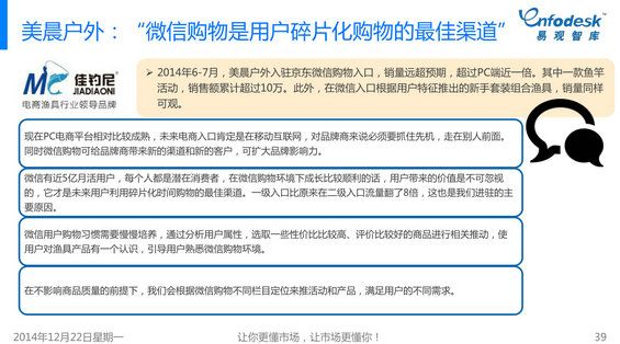 大家都知道,京东在今年5月底开通了微信购物一级入口,现在半年多过去了,微信购物用户有什么独特的行为习惯?在营销上有什么新的玩法?这个白皮书对此进行了揭秘。