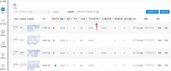 6.优化、维护 在成功投放后,进入知+后台,可查看各个订单的数据,如下图所示,主要数据有: 花费、曝光、点击、点击率、平均点击价格、千次曝光花费、插件曝光数、插件点击数等。