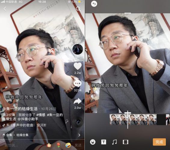 相同的视频,在上传视频号时已经被自动裁剪 当上传之后,用户的名称、头像与标题、转赞评收藏信息将分别位于视频的上下两端,比较显眼。 相比较抖音、快手占 据全屏的“沉浸式”观感,视频号的上下留白界面则更兼顾视频与文字。