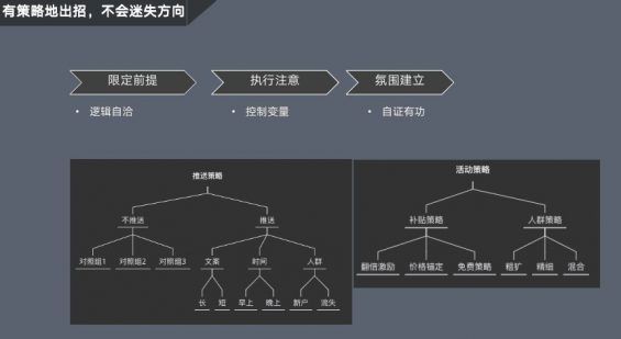 3、策略能力:有策略地出招,不会迷失方向 入选理由: 1)善于找场景,再结合擅长定策略,这样的运营效果才会炸 2)有策略思维的运营,他能够知道哪些动作有价值?哪些动作是在做无用功 3)用策略尝试,实现小步快跑、小成本试错,最终倍增的运营效果 面临问题: 1)花了很多时间,也不知道运营的动作到底是否有效? 2)想冲业绩,但不知道哪里可以重点改善 3)运营能力不知道在哪些方面还可以进一步提升 解决办法: 加强策略制定的能力,如推送的策略、活动补贴策略。制定策略,实际上是一种实验测试的思维 1)明确实验前提条件:本次制定策略的背景、目的、测试周期等等 2)执行时注意控制变量:严格控制变量,比如推送测试:单次测试,只选择一个纬度去测试,其他条件保持一致 3)自证有功:及时分析策略,有效的策略应该给予认可,无效的策略,得总结反思,再次推敲策略制定的方向是否正确。 最后把有用的策略固化下来,成为团队的宝贵财富。