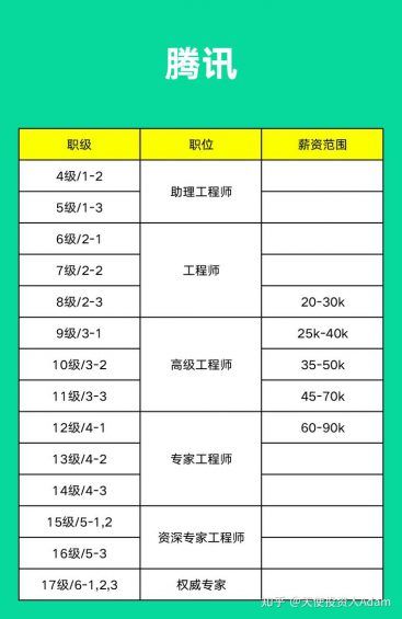 腾讯取消了原来的6级18等的职级体系,将专业职级体系优化为4-17级,4级是校招,6级是社招。腾讯半年一次晋升,三星就可以答辩,12级以下答辩下放部门,11级升12级是个坎。 一般是16薪,但实发年终奖成谜,动不动就拿6-10个月,游戏团队更是让人羡慕。对标阿里P7+,腾讯这边是10级,年薪总包大概是80-120w。 字节跳动