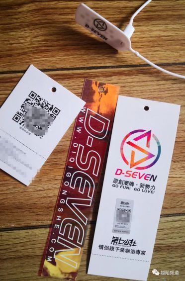 精心设计的吊牌,衣服卡扣,同时添加二维码。