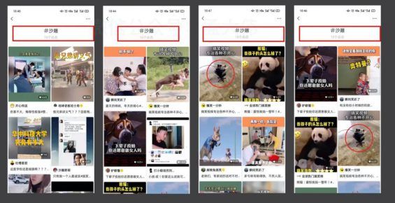 不过这里有一点大家有注意吗? 视频号的话题标签目前为全关键字匹配,比如我点了一个#沙雕 的话题标签的视频聚合页,所有的视频都是带有#沙雕 的话题标签的,而不包含本身很沙雕的视频内容但没带沙雕话题标签的。 不过具体的排序逻辑我暂时还没有得出定论,因为当我通过点击每个视频下方的#沙雕 话题标签,发现每次不同视频跳转的结果页都会略有差异,如下图:
