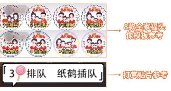 步骤2:打开PS,提前做好 8 张不同类型的全家福头像模板、1- 2 张直播打赏贴片。