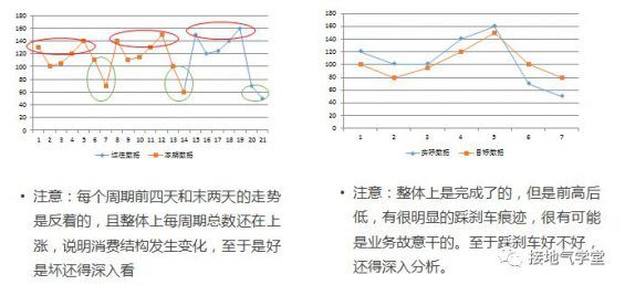 所以说做数据分析的,要对业务常存敬畏之心,不然光空口白话,会被人笑话的。 真要提建议,当然得从第一个问题开始。为什么非要搞高是最初的判断,也是最重要的判断。判断错误会把整个方向带歪,搞得大家兴师动众劳而无功,所以一定要慎重。 二、第一个建议是要不要搞 为什么不是低了要搞高,是因为很多业务都是周期性波动的,比如休闲类消费就是周末高,平时低;B2B交易就是工作日高,节假日低。碰上小长假之类的,除了吃喝玩乐大部分其他交易都会停。所以得多看几周数据,看过往趋势。 有些商品交易有明显生命周期性,比如手机都是新上市的卖的好,过一段时间性能落后淘汰了就自然会差。题目仅给了一张图什么条件都没说,所以有可能这是某个(或者某些类)商品的生命周期末尾,因此还得看具体品类。 我们还不知道,到底这一周交易的目标是多少,如果目标已达成,那即使低一点又有啥问题,所以还得看任务目标。 综上,想说:要搞高,前提是先判定这个数是低。这样就得先找标准。我们得综合趋势、品类生命周期、任务目标,综合下结论(如下图) 很多同学说,这一步看起来很简单呀,不就是把曲线拉长吗。实际上情况可能很复杂。请注意,简单是建立在两个情况上的: