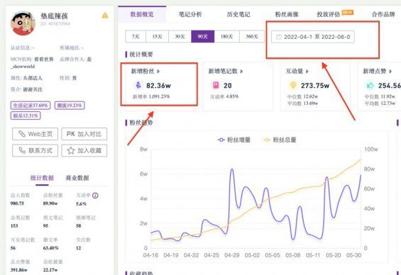 如果你最近刷抖音或者小红书,一定会刷到这么一句话“如何成为一个国际超模,今天要拍的是xxx”,超模系列也成为博主们争相模仿的对象,此系列创作者垫底辣孩涨粉也堪称火箭速度,2个月,抖音涨粉839W,小红书月涨粉80万。 图1:灰豚数据垫底辣孩抖音数据 作为小红书研究者,今天深度拆解垫底辣孩在小红书涨粉秘密,主要从热度表现、账号拆解、流量密码3个角度进行拆解。 01 热度表现 不得不说,垫底辣孩站内真的超级火,无论从品牌合作、账号评论还是站内搜索指数来看。 1. 品牌争相合作 垫底辣孩的笔记评论区,已成官方号的集结地,很多品牌除了在评论区等着爱的号码牌, 也玩起了花式营销,比如评论区的的抽奖营销活动,写一些段子语录。 换句话说,合不合作已经不是最重要的了,抢个前排最重要,这么壮观的场面可不多见呀,品牌的花式评论的确吸睛,如三福:“请问如何引起注意,三福在线等”,足力健评论:“什么时候轮到我老人家。” 图2:垫底辣孩小红书评论区 2. 小红书站内热度 我拉取“垫底辣孩”关键词在小红书搜索热度,发现月均搜索46W+,要知道“乳液”在小红书月搜索指数也才23W,相应,垫底辣孩延伸关键词也很火,连垫底辣娃错别字搜索都6W多。 图3:垫底辣孩小红书搜索热度 不仅在站内搜索侧火,在站内发布侧争相模仿,超模系列,也受到小红书用户的喜欢,从几个月的宝宝到奶奶年龄段再到宠物都在争相模仿,只要发类似的笔记互动数据都还不错,与此同时,变装视频也延伸换装女明星,女团产生新的分支,整体流量都特别好。可谓是,一个人带起超模变装的流量。 图4:垫底辣孩小红书站内情况 如此火的账号到底是怎样成长?是哪条笔记制造的,深度研究整个账号的拆解过程。 02 账号拆解 在账号拆解上,主要从账号基础信息和变现方式,一手看流量情况,一手看变现数据。 1. 账号解析 昵称:垫底辣孩的名字,猜测源于日本一部超励志电影《垫底辣妹》,电影内容是女主角逆袭的故事,跟垫底辣孩在内容中体现的,潦草的农村boy向精致boy的转变非常契合,整体冲突感也是比较强。 人设:土味十足的农村男孩&高级感男孩,人设属性强,真的是看完忘不了。 重点看看垫底辣孩在小红书平台的表现,账号数据,从4.16-6.6号的数据,账号新增笔记20篇,不到两个月新增粉丝数82w,互动量273w。