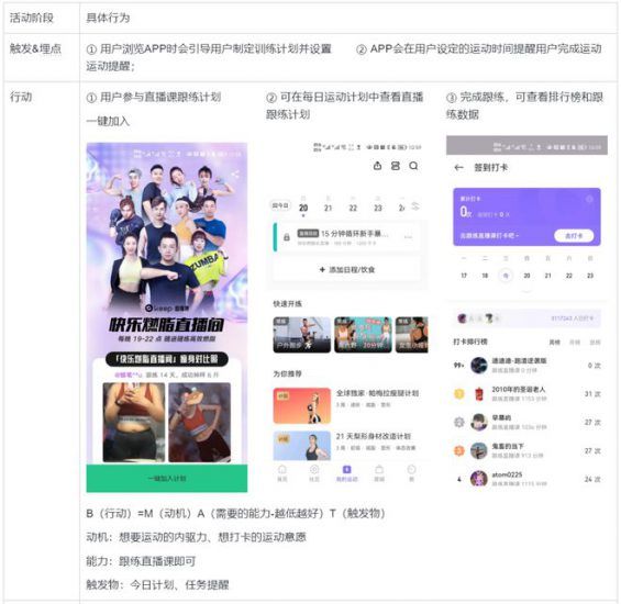 优点: ① 虚拟形象比较新颖,玩法更加丰富多样,给了用户游戏化的体验 ② 形象的外观与活力值和用户的运动行为相结合,有助于用户养成运动习惯,和使用APP的习惯 可优化点: ① 有活力币,但是没有成长等级和排名,对于用户很难产生持续的刺激 ② 用户对虚拟形象完成装扮之后没有其他的激励,没有和其他用户的互动,没有很好的凸显虚拟形象这一游戏化玩法的作用 总结:感觉这次是keep一个新的尝试,并且是对用户进行分层触达的,新用户会触发虚拟空间来促活,我另一个账号是多年老用户,就没有触发这个虚拟空间 APP渠道-成长体系 优点: ① 将用户使用APP和运动的行为对应成长值,建立完整的成长体系,对应等级匹配对应权益,是很好的促活机制 ② 每个等级写下解锁人数,权益包含周边、寻找、会员奖励等,足够吸引用户持续向下一个等级进发 ③ 用户运动时触发成长值任务会对用户进行提示,持续提醒用户成长体系的存在 可优化点: ① 可在成长值体系中增加对keep社区的互动任务、对其他用户的鼓励激励任务,引发用户之间的互动和内容产出,营造更好的APP社区氛围,实现更广泛的促活 站外+APP渠道-活动赛事 优点: ① 定期推出活动与赛事,和勋章体系进行联动,持续激励用户参与活动,有助于养成用户性 ② 不同赛事精美实物可激起用户的收集与获得欲望 ③ 活动门槛足够低,只需要完成里程即可,符合整个APP的调性 亲测我身边的女孩子都很喜欢参加keep的活动,就为了拿到这个勋章 可优化点: ① 活动本身质量很高,可借助此活动进行用户裂变——开展组团跑步运动等玩法 APP渠道-训练计划-以直播课跟练计划为主 优点: ① 可以看出这是keep迎合当下居家健身趋势的一种尝试 ② 帮助用户制定训练计划,减轻用户的运动开启难度,有助于帮助用户养成习惯 可优化点: ① 入口太深了,可把入口放浅一些,加入到其他跑步骑行等运动当中来 ② 如果是我,我会按照地域给用户进行区分,再制作排行榜,可以更有效的刺激用户完成运动 【补充说明】 keep的勋章成就体系做的也非常好,但是我发现拆解之前的促活机制的时候,成就体系是融合在成长体系、活动赛事当中的,所以暂时不做拆解 5、用户留存策略 结合课程后面的用户留存策略,深入分析所选业务使用了什么方式进行用户留存,分别从用户构成,针对策略,朋友圈维护设计等几个维度入手进行业务分析。 5.1 用户留存玩法: 根据用户的行为习惯简单根据其生命周期进行分层和运营 潜在用户——意向用户——付费用户——忠诚用户——流失用户 5.2 留存策略目的 ① 低活用户促活 ② 忠诚用户与付费用户维持 ③ 流失用户召回 虽然课程主要介绍的留存策略以微信为载体,但是针对APP来说,APP本身也有私域属性的留存渠道——社区,所以主要对社区的玩法进行拆解 5.3 留存策略拆解 APP渠道-社区留存策略 优点: ① APP内形成社区,可产出优质内容,可吸引用户互动、参与,可提升用户留存 可优化点: ① 三个载体功能内容略有重合,较难清晰的进行区分,可将内容与载体重新规划一下,精简社区内容 APP渠道-会员权益留存 优点: ① 会员权益种类渗透到用户使用APP的各个流程,且有意识通过会员权益促进用户的再次付费,权益设计的较为合理 可优化点: ① 可联动用户裂变,分享&召回用户可获赠会员卡 ② 用户的运动行为可获得会员卡 ③ 可给未付费会员用户体验会员权益的机会,并且形成定期行为(参考微信读书) 6、总结与优化6.1 优点 ① 由于keep等居家健身行业的盈利较为困难,所以需要在用户留存上下功夫,其成长体系、成就体系等用户激励体系都较为完善 ② keep对自身的课程和干货知识专业性非常自信,也投入了大量的精力在这方面进行研发和改进,最终形成了现在AI伴学激励的课程陪伴训练内容 ③ keep的赛事活动现在也是一大亮点,可以起到较好的流失用户召回、变现和促活的作用 6.2 待优化点 ① 盈利点较少,从用户还是潜在用户和意向用户的阶段,主推的就是课程体验,虽然keep有详尽的周边和keep商城,但是也很少在这几个阶段吸引用户进行变现 ② 社区功能不错,但是亮点不够突出,也不是很清晰,可在这方面进行优化,甚至可以和勋章成就体系进行联动