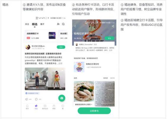 1、公司/产品名称: Keep,目前国内领先的一站式运动健康服务APP,以运动课程为核心建立线上课程体系,注重用户培养,营造专业运动社区氛围,输出高质量PGC、UGC内容,邀请健身kol入驻,制造人们健身话题,推出自有品牌商品,线下智能健身房keepland,线下体验店keepstore