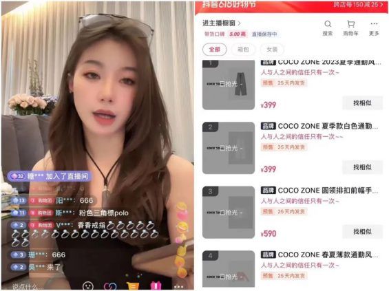 3、走的是近几月很流行的“温柔叙事风” @刘一一的直播节奏与平台上盛行的“叫卖式”“逼单式”“剧本式”大相径庭,面对观众如同面对朋友,坐在沙发上娓娓道来,不像在卖货,更像是在对朋友安利。 除了讲解产品的设计、材质、价格外,也会和大家分享自己的生活方式、消费理念、穿搭心得等等,直播间的商业气息被冲淡不少。 此外,还不得不提的,是其背后强大的团队和供应链。 第三方数据显示,过去30天中,@刘一一 账号直播8场,累计销量50W-75W;@刘11生活号 直播7场,累计销量50万-75万;@Bella刘一一 直播1场,累计销量7.5万-10万。 整个账号矩阵销售的货品已经超过100万件,但与其账号主要关联的几个抖店:CO CO ZONE服饰旗舰店、CO CO ZONE配饰旗舰店、COCOZONE女装2号店、COCOZONE女装3号店等的商家体验分均高达4.99。 如此庞大的销量下还能取得这样的成绩,证明她的团队在产品质量、货品储备、物流运送、售后服务等细节上都没有短板,强大的供应链体系也是其领先于其他主播的绝对保障。