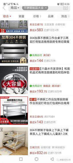 像我用不锈钢制品大全搜索词搜索出来,有不锈钢工作台还有不锈钢子母床和面机等,这些选品在闲鱼都是可以直接上架去卖的。并且方法简单粗暴。 5、对标同行选品法 同行就是最好的老师,做任何一个项目之前,都是确定好方向,找到好的同行对标。把别人做得好的,数据不错的复制搬运成为自己的。但不是盲目的去“抄袭”我们该怎么抄呢,想要成功就要抄出水平来! 错误的抄袭方式:无脑搬运操作。找一些“我想要”很多的商品或者销量高的商品,直接复制他的标题、文案、图片,甚至有些水印都还在就保存发过去了。 这样做会导致什么?两个字:限流。这种抄袭的思路是广泛的,一个产品抄袭的多了,同质化就严重,竞争就激烈。平台也将不会给你流量,不在把你的产品推广在主页,限制流量。只是抄到了表面没有抄到人家的精髓,卖不出去反而弄巧成拙,原创看见一举报一个准。 如何“抄”到精髓?在闲鱼首页看到“我想要”数量多的,就去咸鱼搜索框搜索这个产品的名字。搜索出来看几个产品销量如何,如果点了几个产品销量都还行,那就证明这个类目的商品的有一定的市场。就把这个产品去拼夕夕搜索。具体步骤可以看我实操的截图。