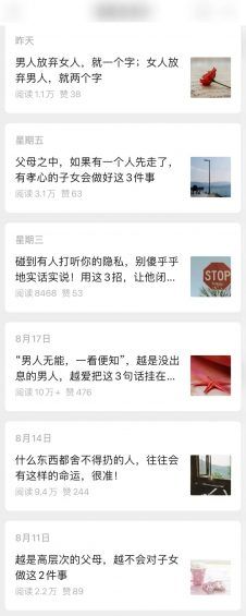 ▌问题11:怎么用GPT二创文章?(以传统文化号为例) 传统文化类的内容,一般发这3类内容:传统国学(生肖属相、民间俗语、时令养生、长寿之道)、家庭关系(儿女孝道、家庭教育、婚姻关系)、人生哲学(交友处世、财运福报、修身养性)。中老年特爱看,看到就会转发到家庭群、朋友圈,所以在微信一向阅读量爆棚。 例如该账号,5月开始发传统文化类的内容,1-2天更1篇,近2个月,阅读量在3万+的有18篇,占比51%。在10万+的有9篇,占比26%。