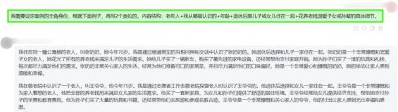 步骤4:这时你会发现GPT写的例子(上图划线部分)非常笼统、假的一逼,这时我们可以让GPT给我们优化案例。 你可以在GPT里提问:我需要设定案例的主角身份,根据下面例子,再写2个类似的。内容结构:老年人+我从哪里认识的+年龄+退休后跟儿子或女儿住在一起+花养老钱溺爱子女或孙辈的具体细节。