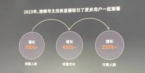 2)生活类是最接地气的视频号直播内容,大家喜欢在视频号直播自己的日常,用户也爱看。知识品类的直播观看人数同比去年增长了7倍以上,观看时长增长了450%以上,整体付费人数增长了250%以上。
