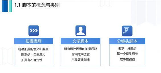 脚本一般分为拍摄提纲、分镜头脚本和文学脚本。它们分别适用于不同类型的视频。