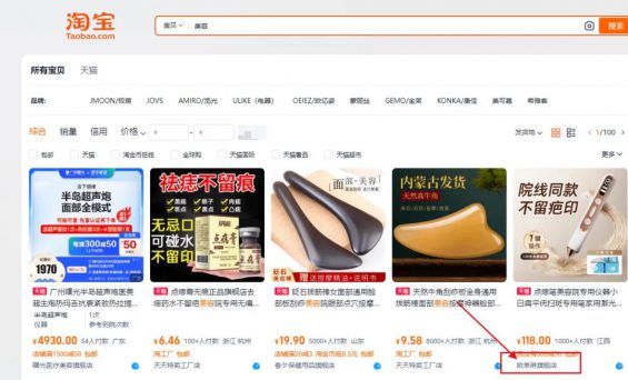 2、 利润驱动型选品:中期的深耕 “利润为主,低流量” 适合已有一定基础的卖家。 比如各种机械大件,美容养颜,减肥瘦身等功效性产品,若是单独这种品出单相对比较难,你可以和前面流量的品结合起来进行捆绑销售,可以提高转化率和利润空间。 举个例子,你低价品是女性的美容化妆产品,那么你可以发几个帖子表明一下自己皮肤变好的帖子,加上低价产品的铺垫,信任会增加,你的高价更容易出单,各种美容器械的利润高的吓人,发货自己都害怕,这种产品怎么选呢? 比如:淘宝搜美容,找那些客单价高且真实销量不错的产品,找到这种专卖美容类产品的店铺。