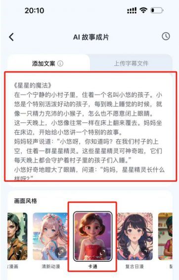 把deepseek创作儿童睡前故事内容复制到这里,可以直接给文案,也可以给字幕,画面风格选择卡通,这样制作出来的内容多数都是孩子喜欢的,再设置生成参数,就可以快速制作了。