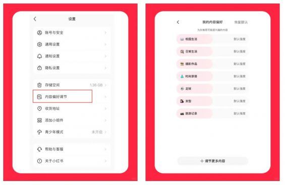 如果笔记表现较好,想要进一步曝光,还可以选择商业流量助力,否则一般在笔记发布的7日后推荐就会结束。 所以如果想要提高笔记流量,小红书创作者们可以从三个方面进行改进提升: ①撰写优质笔记:这是小红书笔记创作者一直在学习的内容,从标题、封面、笔记内容方面,可以翻看我们往期的文章进行学习,未来我们也会继续为大家分享优质笔记的创作方法。 ②做好偏好匹配:也就是优化和布局关键词和给笔记打标签,让平台能够根据内容话题和用户话题,把笔记推荐给对应的兴趣用户。可以点击我们往期的文章进行阅读《用好小红书笔记关键词和标签,流量翻倍不是梦!》 ③多互动、提高CES评分:文章发布后,及时关注评论区,在评论区引导互动、积极参与讨论,以此提高CES评分,争取被平台推送到更高的流量池。想要增加笔记互动,具体可以点击往期文章《新手如何增加小红书笔记的互动?》阅读学习。 而从用户的角度来说,刷到哪些笔记,是兴趣发现机制影响的:基于每个用户的设备信息、地理位置信息、浏览记录、互动操作,如点赞、收藏、评论、搜索等,它能够构建出用户的兴趣画像,并识别出用户可能感兴趣的内容进行推荐。 为避免用户长时间看到同类内容,小红书还会实施打散机制这一内容干预策略,也就是将不同类型、主题的内容混合推荐给用户,使其能够接触到更加多元的信息,从而增加停留时间和活跃度。 (2)提升推送多样性 但以上都是系统单方面对用户做出的判断,用户被动接受推荐,没有主动反馈。 这就非常容易出现“用户看过什么,系统就一直推送什么,用户再次点击”的循环,形成一个“过滤泡”,以相似、有限的信息将用户包围。 为打破这一循环,用户对推荐内容拥有自主选择和管理权,小红书强调“内容偏好调节”功能,如果用户想增加或过滤具体类目标签内容可通过小红书App【设置】-【内容偏好调节】,进入功能页面进行自主调节;或用户对推送内容不感兴趣或希望减少推送, 可以通过长按笔记,点击不感兴趣并反馈具体原因。