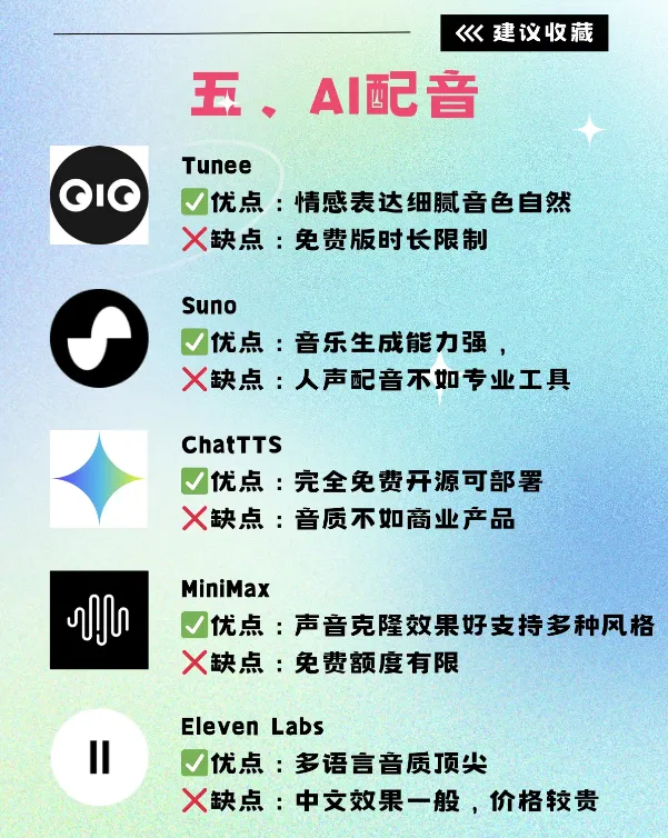 Tunee ✅优点:情感细腻 ❌缺点:时长限制