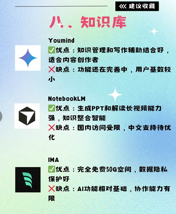 IMA ✅优点:免费50G ❌缺点:功能基础