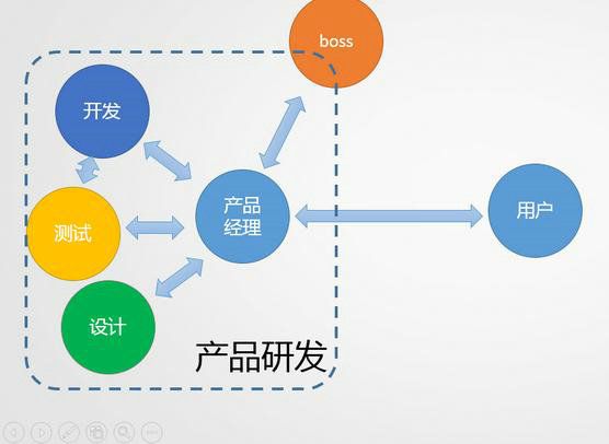 •虽然用户产品的每一行代码都是开发工程师所编写、设计师设计的,但是开发工程师和设计师并不直接和用户接触,而是经由产品经理这个环节。