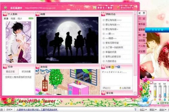 2005 年,更多用户把 QQ 空间当作另一个 QQ 秀。这个少女风的 QQ 空间界面很可能出自黄钻会员之手。对于一个初中生来说,花爸妈的钱也是心疼的。打包买空间装扮还是便宜点,似乎也就心安了。 那一年,中国的社交网络涌现了一些产品,包括学 Facebook 的人人网、美国红杉资本投资的 51.com、在《读书》杂志上打了第一支广告的豆瓣。同年 9 月,Facebook 也刚刚对大众开放。