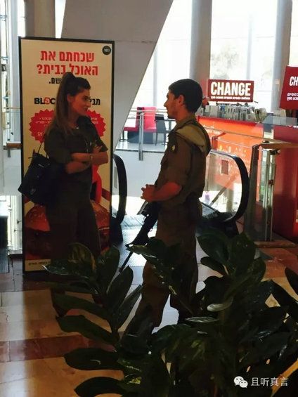 以色列现有人口880万,其中合法持枪的人120万。全民义务兵役制,男三年女两年(这意味着大家都知道怎么使用枪支)。士兵回家探亲(以色列不大,所以家和兵营并没有桂林到上海那么远),枪要随身携带。所以在街头,shopping mall,加油站,咖啡馆,景区等各处,到处都可以见到荷枪实弹的男女军人,武装警察和装甲车。以色列人的逻辑是,战斗随时会发生,任何时间,任何地点,都要做好准备。