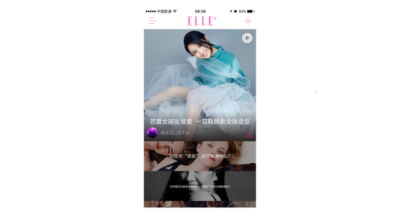 如果该APP主要表达的信息层级较为单一,且并不会在入口间频繁且反复跳转,那么将列表式导航作为主导航是一种不错的选择。例如杂志Elle,作为一个杂志APP,他以文字、图片表达为主,层级浅且内容评级,用列表式导航作为主导航来构架内容,简单而直接。(如下图)