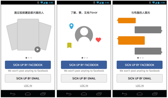 敏捷验证的过程就是用最简单的方案先尝试去这样设计,然后上线两天,观察数据。两天之后如果数据有提升,那就在这个设计方向上再接着深化一下。如果数据没提升或者变差,就去掉,再上线另外一个设计想法。 很快我们就发现了效果,比如我们背景视频之前是几个人沟通的场景,我们改成了本地美女(亚洲面孔),发现用户点击按钮的比例提升了1个点。然后我们又在下一个版本试了下欧美美女,数据又提升了1个点(看来欧美妹子更高大上)。 而改进按钮就更有趣了,首先我们怀疑海外用户担心隐私问题,在Facebook按钮旁边加上了隐私保证的文案,数据上升了1个点。将Sign up by mail 改成了 Sign up by free都能上升3%,甚至连 “使用Facebook登录” 的按钮颜色和Facebook一致都能带来转化的提升。 经过我们的一系列努力,很快步骤一的流失率减小到了8%,整体的注册转化率也上升到了82%,领导非常满意并且在大规模推广中节省了很多”开支”。 但也不是所有设计都是一番风顺的,比如在验证过程中我们学习很多App做了一些轮播图介绍产品的亮点,但是上线几天后发现流失不但没有减小还还小幅增加了。于是也顾不得设计师努力好几天的美图,只好下线。 视觉设计师也很诧异,一副”怎么会?我觉得这东西挺好的”表情,后来我们总结反思是因为所有的用户都是从GooglePlay下载的App,而商店的截图已经很好的说明了产品的亮点,新加的轮播图不但重复说明,反而还让页面变得复杂了,用户对操作不知所措。 四,保证验证过程的真实和高效 1,同一版本只验证一个设计点 当时我们修改按钮文案的时候开发就说背景视频也可以顺手替换,成本非常低。但是如果同是一个步骤的优化如果同时上线,我们就不知道到底是谁带来了效果,所以刻意把按钮发一个版本,背景视频的替换放在了下一个版本上线。但是这样就需要非常快速的版本迭代配合,猎豹的敏捷文化Facebook都公开赞赏,所以我们在优化期间基本可以做到每隔2天发一个版本。 2,先粗糙,再细致 这么快的速度设计师岂不是疯了?哪里做到过来! 3,保持数据的稳定 还有就是数据的稳定,比如我们在优化注册期间就是在那么几个地方打广告,如果广告位一变吸引来的安装用户大变,从妹子突然变成了大妈,那我们的验证结果就不可信了,所以做设计真不是自己的事情,这期间和推广部门的配合也很深。 最后,因为产品的一些细节还是比较敏感的,所以我举的 “注册转化率” 案例的数据和过程都模糊化处理了,仅供当让大家更简单看懂的例子。真实情况下要把数据玩转是一件很复杂的事情,要耗费大量的时间精力,但是如果你有这个想法准备探索一下,希望『确定数据目标 – 深挖数据 – 快速敏捷验证设计 – 确保真实高效』这个方法能够给你一些思路。 原文地址:zhuanlan.zhihu |