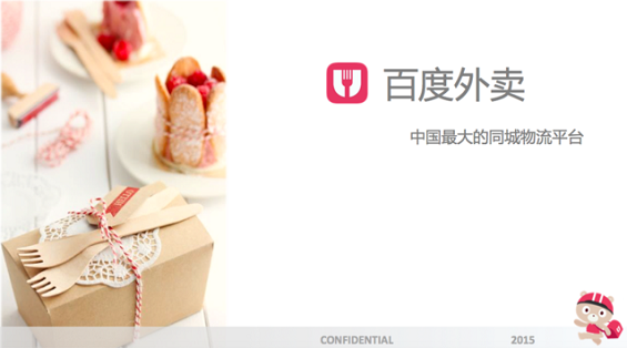 百度外卖融资文件的关键信息: 1、百度外卖的定位可不仅仅是外卖哦,是“中国最大的同城物流平台”。其第一阶段时,2014年~2015年,做外卖O2O;第二阶段时,2015年~2016年,建物流平台;第三阶段,是2017年,做千亿级同城物流交易平台。呵呵,野心够大,饼画的够大,才能好融资啊。 2、百度外卖是百度战略转型的重要方向,是百度的高频O2O入口、能拉动百度支付及完成最后一公里交付。总之,就是百度很看重,会不遗余力导流支持的,所以,有钱的投资方们,你们还等什么呢? 3、百度外卖2015年8月的客单价为58元,月新增用户263万,高价值用户复购率为69%,日均物流配送单数17单/人/天。大意就是,我棒棒哒,快来投我。 4、百度外卖预计,2015年实现交易额超过80亿元,部分商圈实现盈利;2016年交易额超过250亿元,成熟城市实现盈利;2017年交易额超过500亿元,整体实现盈利。总之,就是说,我牛牛的,快来投我。 5、这是百度外卖的B轮融资,预计2016年Q1完成,融资额3~5亿美金。 以下是BP全文,供各位创业者学习,三击可以放大图片: