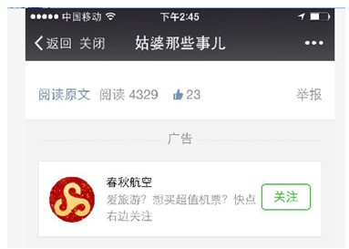 先发动公司领导!互联网公司都是挺开明的,公司老总当然也愿意宣传公司的微信号,初期让公司领导帮忙宣传,同时让同事领导介绍一些行业内的大咖认识认识,并且拉你到一些行业认识集中的微信群,QQ群,让你完成原始积累。 案例二:姑婆那些事儿 姑婆那些事儿在初期推广的时候,我们选择已经检验过的有影响力的文章,推荐给一些有影响力的人,比如公司的老总、行业的大咖、比较活跃的QQ群和微信群的群主。 同时还会最大化作者的力量。我们在文章发布后,会首先联系作者,利用作者推广,除了让他自己发到朋友圈,还会让他发动公司的同事、朋友转发到朋友圈,这个互动性是非常好的。 如果朋友帮忙转发,只是单纯的转发而没有附加任何评论的话,效果是相当一般的,如果他加上一些评论甚至是推荐这个号的时候,效果就会好上三倍不止。 方法3:内容传播 假设你能够保证能够有稳定的不错的内容,那么肯定要想办法将内容效益最大化。
