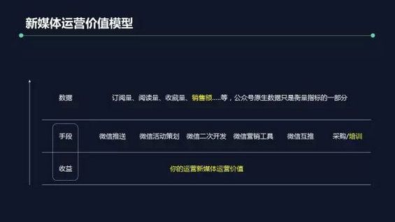 为了大家能够有耐心看完这篇万字长文,在文章的开头,先介绍微信上继萌娃投票之后的又一疯狂涨粉神技,而且还能轻松的解决微信朋友圈目前因流量过大而导致的链接封杀问题。 它是我在1月21日策划的微信红包活动,用户只需要在服务号生成一张带参数的二维码海报,并将它分享至朋友圈(或者微信群),如果有好友通过二维码海报关注了服务号「雪橙理财」,你即可获得积分,用这些积分可以兑换微信红包。这次活动用户分享出去的不是链接而是图片,所以再火爆都能避开朋友圈的链接封杀! 以上只是涨粉的第一层,另外一层你的好友关注服务号时,系统会自动push一条此次微信红包的获取说明,同样可以引导他生成二维码海报分享至朋友圈。整体的操作流程如下: 下面说说活动的传播,类似这种送红包的微信活动,难点是如何让用户知道它的第一层传播。介于之前的活动经验,传播上最有效的是微信群,所以在活动开始前就潜伏在了几十个微信群准备发小广告。 活动与传播渠道准备完毕,出于运营的习惯,在活动开始的前两天做了一个小调研,把自己的二维码海报发到10个人的微信群,用户反馈良好之外没啥其他多余的动静。 后来上一个厕所的时间,手机就不停提示有积分增长(有好友扫描关注服务号,系统也会push积分增加的消息给你)。服务号后台订阅量开始涨了,每隔几分钟涮一次就新增几百枚粉丝。这种速度不出意外的让活动在还没正式开始前就结束了,因为在接下来的24小时里用户邀请获得的积分足已全部兑换掉所有红包。 (公众号新增人数数据图) (活动说明图文阅读量) 24小时涨粉38000的活动经过已经交代清楚了,如果活动处理的好,同样的红包奖池可以获得比三万八还多的粉丝,有公众号涨粉压力的童鞋可以借鉴。具体的活动优化处理工作,这里就不继续写出来了,等下次活动验证完后再补充。 下面,聊聊这次涨粉效果远超预期的活动,为何是一个“失败”的新媒体。 第一, 由于过于火爆,活动还未正式宣传就提前结束,它只达到了涨粉(新用户引入)效果,并没有实现策划时提到的活跃老用户目的。 第二, 在活动病毒性的传播开后,未及时对一些参数做调整,在固定的红包预算下,错失了用更低成本获取粉丝的机会。 第三, 价值缺失,无后续转化,不可判断这种活动的真实用户获取成本多少?以及质量如何? 处理第一、二点问题是新媒体运营的基本功,大家应该都能够意识到怎样去优化它。第三点是高阶新媒体运营的主要工作,是新人容易忽略的点,它是新媒体的引新价值主要目的为提升用户转化率,用户销售额。 做有真实价值的新媒体,运营才能够持续,考虑到并不是所有的新媒体运营都是冲着注册或者销售产品去的,所以系统谈谈如何做有价值的新媒体运营。 在开始前,先给大伙看一下别人家的运营都在做什么? 第一个是渠道运营,他们的价值非常明显,就是各种应用市场的排行榜下载量、评论量,以及是否在一些应用市场的年终盘点上获奖。 第二个是活动运营,活动运营比较简单粗暴,通过时效性、借热点、造节等方式的活动策划,去提升APP的日活、销售量。关于这方面,大家可以重点学习电商天猫、阿里、京东的活动运营,他们是怎样整合资源和流量去推活动的。 第三个就是内容运营,类似网易、新浪,搜狐,今日头条,腾讯新闻这样内容型新闻客户端,内容对他们来说是非常重要的一块。对于非内容型的产品,内容运营可以通过栏目的建设,结合一些热点事件,通过H5、音频、动漫等形式包装产品。 最后说一下品牌运营,比如说前段时间应用宝做的9亿人朝我看,类似的一个APP评选的活动。品牌钱花的多,成绩也明显,各种PR,各种出差,各种做活动,他们看起来非常的风光。 介绍完其他运营职能的工作情况,大家再看看新媒体运营。我觉得存在的最大的一个问题是非常容易出现价值匮乏,想不清楚起好标题的目的是什么。你可能会说是为了阅读量和涨粉,但是公司做新媒体的真实需要跟希望的收益你懂吗?个人方面,包括写绩效评估和介绍,又怎么体现你的价值呢?我相信这是咱们新媒体运营童鞋非常容易困惑的地方。 也正是因为我们找不到新媒体运营的工作价值,所以会选择一味的追求阅读量的提升,做到10万+的阅读量,或者做单次活动新增10万用户这样的活动。且不说能不能做到,这样的新媒体运营工作本身就是不可持续的,你这次做到10万,你下次是不是得做到20万,才觉得是做好了一件事呢? 所以我觉得做新媒体运营,要找到比做阅读量、涨粉更有价值的事情,就是清楚地知道通过新媒体为公司创造怎样的价值。基于这样的价值,才能做出更多丰富、有趣,或者对自己运营的发展更有利的一些运营工作出来。 先给大家看一个案例。我当时在贴吧工作,贴吧有一个公众号叫做贴吧企业平台,如果用现在的新媒体衡量指标,阅读量、关注量、点赞量这些来衡量,它应该是一个失败的公众号。 大家可以思考一下,一个失败的公众号运营童鞋,在百度是怎么存活下来的。按理说,能进百度应该不会太笨吧,那为什么它的阅读量跟点赞量都很低,而且图文页面设计还丑。 这张图里面有一个关于粉丝增长的数据,这个数据是我在百科的一个朋友,他做的粉丝投票的活动,半天的时间就涨了15万粉,效果非常的惊人,如果你没流量想做到这样的数据很难。这样的活动在贴吧,在百科,在百