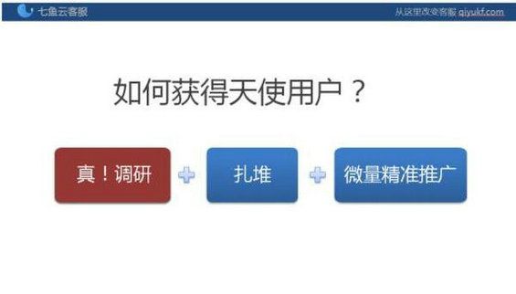 没钱、没流量,怎么迅速找到种子用户?哪三种用户是需要你警惕的?“冷启动”到底该如何启动? 昨天(2月25日),在四川成都的易创课堂分享会上,网易七鱼云客服运营总监肖钰妍发表演讲《七鱼云客服:用户至上的产品冷启动法则》,讲述网易七鱼云客服从2015年8月至今半年多来经历的从0到1冷启动的全过程。 以下为演讲稿(部分删减) 大家好: 我是网易七鱼云客服的运营总监肖钰妍,大家可以叫我萧萧,很高兴能和大家分享一些心得。今天跟大家分享的主题是《用户至上的产品冷启动法则》。 关于MVP一: 让用户告诉你什么功能最迫切! 产品经理可能会比较了解MVP理论,MVP(minimumviableproduct)概念由EricRies在《精益创业实战》中提出,意为“最简可行产品”—用最快、最简明的方式建立一个可用的产品原型,这个原型要表达出你产品想要的效果,然后通过迭代来完善细节。 说得通俗点,大家创业时或者做一个新产品时,不要一下子想着要把这个产品做得非常完整、完善,而是用最小的代价去验证这个产品在用户那里是否有价值和可行。抽象成模型是:用最小的代价去让产品诞生,找到早期用户来对产品进行反馈,他们的反馈结果帮助你理解这个产品到底是否具有价值,到底是否可行。 我自己现在负责的项目是七鱼云客服,通过MVP的实践方法验证了智能客服机器人的价值。 在加入七鱼云客服前,我负责网易VIP邮箱,有近50人客服团队,以全人工的方式提供服务。同时网易的诸多游戏产品,像《梦幻西游》会内置游戏精灵,帮玩家解答游戏相关问题,是客服机器人的一种应用,验证了智能客服机器人可以极大地节省客服人力成本。 由此,我们对智能机器人这个功能的判断是:小型团队或者中型团队不太需要智能客服机器人,只有大型团队、当它的人力成本急速上升的时候才会有智能机器人的需求,这是我们以自己管理客服团队的经验做出的判断。所以,在做产品排期时,我们并没有将智能客服机器人放在前期。 但是,大家都知道MVP只提供一个最小价值的产品,那么最小价值的产品是需要你去验证的。当我拿着七鱼1.0的版本跟七鱼的用户去沟通,我问了两个10人左右规模的成长中的创业型团队,他们说他们需要智能机器人,这件事情让我很震惊。他们告诉我的理由是,团队在快速扩张,在扩张中人力招聘赶不上业务发展,这时候非常需要机器人帮他们挡掉一些机械式的回复。得到这个反馈后,我们发现这个智能机器人功能的优先级比我们想象得要高,回来后马上让团队加快速度。得益于网易深厚的技术积累,让我们很快在目前这个版本提供机器人功能。这件事情说明,虽然我自认为是理解这个行业的,但也要到客户那边验证你的想法,你才能得到一个真实的反馈,而且这个反馈越早越好。 关于MVP二: 团队中有内行非常重要! 关于MVP我要特别说一句,一个团队进行一个行业的创业也好,开展一个新的业务领域也罢,团队里有内行非常重要。因为MVP是一个对于产品价值的假设,你的一个创新型的假设,很可能就是这个行业的常识。我觉得这是对初创企业来说最大的坑。所以进入一个行业一定要有非常专业的人在团队内,所以我们在团队组建早期就招聘了来自金融、电商等领域的客服专家,帮助产品少走很多坑。 比如我们要确定一个客服同时接待多少个客户是最佳的,对于产品功能来讲是一个配置项,但这个默认配置多少最合适呢?当团队有内行就会变得很简单,之前若干年的经验积累和测试,确定一个客服最多接待5个客户是效率最高的。 关于MVP三: 找到早期用户去验证你的产品! MVP是最简可行产品,那首先得有一个产品,才能知道用户的反馈。需要打破的观念是,没有产品也可以获得用户反馈。 常见情况是产品要上线了,找到运营团队设计运营方案。我认为最佳的方式是:运营团队在项目很早期就参与到项目中来,在产品、技术、视觉打磨的时候运营团队负责获取早期用户反馈,积累早期用户。与产品开发并行,会让运营推广更加理解产品,也让产品一直在保持和用户的密切接触。 关于用户一: 警惕三种所谓“用户”! 在早期对产品最有帮助有两种人:一种是天使用户,积极主动地使用产品,并且给你提意见;另一种是种子用户,是经过用户分析和定位,确定早期产品可以满足需求的用户。这两者并不完全相同。 天使用户会主动使用你产品,但他们不一定是你的目标用户,甚至会给你产品带来一些负面的影响,有三类用户需要保持警惕:一种是互联网观光客,如果你的产品曝光在媒体上,他们会来体验你的产品,不会对你的产品带来直接的价值;一种是意见领袖,如果意见领袖带来了负面评价,会影响对早期产品的口碑;最后一种是挑刺型用户,提一些不重要且和产品阶段不符合的需求,也可能影响产品的节奏。 关于用户二: 哪里去找天使用户? 接下来一个问题是,产品早期要获得天使用户,获得他们的反馈。到底有什么方法可以获得天使用户,因为一开始不会花很多钱去推广。我这里给大家提供几个方法: 关于调研:是真的去调研!我在之前的分享《你该如何打造一款接地气的产品》里也提到过:很多人所做的调研只是发个问卷,这种方法可以用,但你获得的信息是很有限的。“真调研”的意思是:你找到你的目标用户,跟他去聊天,或者请喝咖啡。做互联网的人心态都是很开放的,通常都会愿意给你真实的反馈