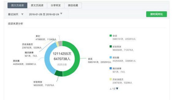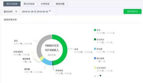 就在前几日,微信公众平台后台的“图文分析”功能全面改版,主要改变如下: ❶增加多篇图文阅读来源分析 ❷提供公众号内和朋友圈等阅读数据下载 ❸单篇文章在微信内传播逐层转化分 ❹增加单篇文章阅读来源分析 简单来说:我们终于不用再猜读者们是从哪里看到我们的文章了,每次推文的转化量一目了然。 我们也能更清楚地判断:什么样的内容更容易转发?哪些内容对涨粉的贡献功不可没?同时,新的分析功能也能指导我们如何调整运营策略。 结合这些新的数据分析功能,在运营中,你们那些心里好奇、但不好意思直问的这几个问题,答案更容易直观呈现了: ❶百万大号的粉丝增长从哪里来? ❷别人家的公众平台图文转化量是怎样的? ❸别家的平台阅读量最高和平均值是多少? ❹爆文到底该如何打造? 所以,在分析功能改版的第一天,我们邀来不同量级的几个公众平台,从万级、十万级到百万级,分享出他们的数据,来给你们答案。 十万级平台的后台数据 首先是近一个月来的所有图文阅读来源分析,总共约有187万次阅读、105万人次参与。 很多运营小伙伴很好奇上图中灰色部分“其他”这个来源具体到底是哪里,微信官方的说明是:“其他”这个类别是指微信内多个阅读量不大的场景——如自定义菜单、自动回复、文章中内链点击、微信搜索等等,后续随着某些阅读场景的数据增长,微信官方说会再进一步细化并展示给公众号。 下图是该美食类平台的一篇阅读量处于平常状态的单篇图文分析:推送后7天内,总阅读量约3万,属于平均值的水平。这篇图文推送是2月19日推送的,当时后台粉丝数约22.3万人。 由于是美食垂直领域的内容,所以有超过90%的阅读来源是通过会话获取的,扩散量不高。 最后是该平台上一篇爆文的阅读来源分布:推送后7天内,总阅读量约8万,推送后2周,实际阅读量约十几万次。 蓝色的部分是朋友圈分享,这是引爆朋友圈的最大助力。 推送该图文时,该平台的粉丝量大约11.8万,这篇图文是在2月1日推送的,也就是说,从2月1日到19日到10天里,该平台的粉丝数量从11.8万上涨至22.3万,不到3周足足翻了一倍。 背后的原因有两点:第一,这个平台本身主打的美食垂直领域,每次推送定位的都是精准人群。第二:优秀的原创类平台本身增长速度就十分惊人。 (2)文化书摘类平台的后台数据 首先是近一个月来的所有图文阅读来源,总共约有1211万次阅读、647万人次参与。 下面是该文化类平台的一篇阅读量处于平常状态的单篇图文分析:推送后7天内,总阅读量约7.9万,有大约5.8万人阅读,后台粉丝数近90万,实际阅读量10万加。 最后是该平台上一篇爆文的阅读来源分布:推送后7天内,总阅读量约22万,推送后2周,实际阅读量约十几万次。 在该平台上,爆文和处于平均值的阅读量图文的阅读来源比例很相近,这是因为,文摘类的内容,本身受众面就比较广,所以哪怕普通的一篇,也有大量的阅读、通过朋友圈获得展示。 百万级平台的后台数据 首先是该平台近一个月来的所有图文阅读来源分析,总共约有3110万次阅读、1297万人次参与,他们的后台粉丝量数百万。 下面是该平台的一篇阅读量处于平常状态的单篇图文分析:推送后7天内,总阅读量约35.5万,有大约28.9万人阅读,一周后该文阅读量轻松突破50万。 最后是该平台的一篇爆文的阅读来源分布:推送后7天内,总阅读量约115万,100万人阅读,推送后2周,实际阅读量约200万次以上。 (2)爆笑gif图的后台数据 首先是近一个月来的所有图文阅读来源,总共约有2275万次阅读、450万人次参与。 下面是「爆笑gif图」的一篇阅读量处于平常状态的单篇图文分析:推送后7天内,总阅读量约9.3万,有大约8.5万人阅读,后台粉丝数超过90万,一周后该文阅读量轻松突破10万。 最后是「爆笑gif图」的一篇爆文的阅读来源分布:推送后7天内,总阅读量约25万,20万人阅读,推送后2周,实际阅读量约50万次以上。 来自于「爆笑gif图」@慕容继承的爆文打造心得: 最近不少人都在抱怨,微信打开率降低了。一个原因是信息量爆炸,用户关注的信息太多。还有一个原因是账号的忠实粉丝没那么多。爆笑gif图的号主在培养忠实粉丝方面很用心:争取每次的内容,都能让粉丝有预期,甚至超出他们的预期。 我觉得成为爆文,主要有两点决定因素: (1)文章要有足够的穿透力,能调动更多人的情绪共鸣。 如果把前年央视春晚微信的“摇一摇”,去年春晚的支付宝的“咻一咻”比作是“爆文”,我们能够看到,摇一摇和咻一咻都足够有穿透力。都足够有趣,都趋利,都能够让身边的人产生共鸣。 (2)要有足够多、足够大的传播节点。 粉丝越多,传播节点越多,成为爆文的可能性越大。传播节点不等于社会热点,每个人都是自己圈子里的一个传播节点,甚至是唯一的“结点”,能打动越多人,传播节点就越多。 而大的传播节点就是央视春晚,瞬间就上亿的小传播节点。爆文需要在用户阅读的瞬间,调动他的情绪,产生共鸣。要么感动,要么爆笑,要么愤怒,要么焦虑。「爆笑gif图」抓的情绪是爆笑,让你笑到肚子疼。不怕你不转。 万级平台的后台数据 来自于「微互动」的后台总数据:近一个月来的所有图文阅读来源,总共约有22.4万次阅读、12.7万人次参与。 下图是「微互动」的一篇阅读量处于平常状态的单篇图文分析:推送后7天内,总阅读量约1.8万,2周后有大约3万人阅读。 最后是「微互动」的