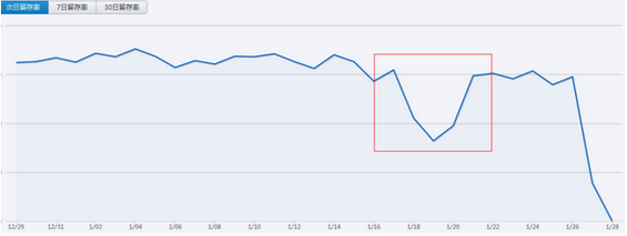 这些天,有几位朋友都找我聊产品的留存率,有做手游的,做工具的,做社交APP的,于是把以前写过的留存率文章翻出来。 次日留存、7日留存、30日留存、周留存、月留存,都是产品经理们必须掌握的概念,需要有用户留存意识,在产品上体现用户留存的设计。 究竟要做到多少留存率,产品才算合格,一个经典的经验数据,就是留存率的“40–20–10”规则。 Facebook平台流传出留存率“40–20–10”规则,规则中的数字表示的是次日留存率、第7日留存率和第30日留存率。规则所传达的信息如下: 如果你想让游戏的DAU超过100万,那么新用户次日留存率应该大于40%,7天留存率和30天留存率分别大于20%和10%。 另外,下图是来源于Talkingdata的2014年11月游戏APP的日次留存率数据,可以看到,游戏APP的平均次日留存仅仅为30%左右,所以,当一款游戏的次日留存能到40%,真的可以恭喜开发者! 下面这张图,是各类游戏在10日内的留存率数据趋势线,次日留存到30%,已经不容易,到7日,基本都在20%以下。 下面这篇文章,来源于雷锋网,是一次对留存率分析的实际案例,供大家参考。 留存率分析案例——次日留存率骤降50%之谜 本文作者于洋最近在做留存分析时,遇到了不少的情况,也经常会有人问作者,为什么自己的游戏突然次日留存率降了一半。 如果留存率只是作为一个简单的指标,那对你价值还是蛮有限的,今天就和大家说说一个case,这是不久前解决掉的问题,相信会帮助不少人。 统计发现某三日的次日留存率较之前和之后下降了50%,但是在DAU整体趋势上没有显示的变化。 但是通过查看安装量,用户注册量,发现安装量没有明显的波动,但是用户的注册量骤然增加。下图是系统统计的截图 我们再看一下用户注册量 由以上的数据表现来看,初步断定是两种情况: 新开服务器 老玩家刷号 针对第一种情况,我做了以下注册和安装的趋势图。 由游戏官网得到了游戏开服的时间表。 图中除了1月6日的波峰是由于游戏做了软文投放,刺激了游戏用户增长外,其他的红圆圈(除了1月16日)均是在周末开新服刺激新用户增长的,工作日所开的新服并没有出现波峰。 比如1月3日,1月7日,1月9日等等。该游戏在1月18日开设新服,根据刚才的经验,1月18日不会出现较大的波峰,但是从1月18日~20日出现一个较大的波峰。即排除了工作日新开服务器造成的影响。 那么也就是剩下了第二种情况,即老玩家存在刷号的可能性。那接下来,我们需要做两方面的工作: 继续查细分数据,如注册活跃占比,注册安装转化率,玩家单日游戏次数,留存趋势表现数据 继续查找数据有问题期间的运营活动情况,便于问题定位。 这里我们先说第二点,我在该游戏论坛发现了一个活动:新服开放后,新建帮派在开服后前3日,召集10名玩家加入其帮派,即送帮主大量金币。 由此,基本确定问题出在了此处。不过我们还要从另一层面来看当时所在时期的问题,即从数据层面来看。 单日游戏次数 明显发现18~20日的单日游戏次数增加明显,这是小号增加,刷号的一个征兆,因为刚才我们看到了这个时期的安装量没有增长,只是注册大幅增长。 单次游戏时长 单日游戏时长从一直保持的相对平滑和稳定,但是在18~20日三日,出现了明显的波动,即用户单次游戏的时长不高,即存在大量低级账号。 留存趋势表现 留存率能够我们快速定位问题,是否是某一个新登用户质量的问题,某一日或几日外部事件导致的留存变化。 如果是用户质量问题,那么该批次用户的新登次日留存率、二日、三日等留存率都会偏低; 如果是外部事件导致的,那么就是不同批次新登用户在某一统计日的留存率会表现的都很低; 我们先来看第一种情况: 次日留存率的前后变化 很明显的发现,次日留存率只是在18~20日三天下滑的很明显,三天之后次日留存率恢复正常水平。 接下来,我们再看看18~20日的留存趋势与21日之后的留存趋势表现 这里我们可以明显的发现,18~20日的留存曲线趋势表现整体上是低于之后的21~23日留存曲线的趋势表现,即18~20日的新增用户质量不高。 因为大量是老用户刷新号登录造成数据增长,这样的用户实际上活跃度是有限的,即为了得到利益,使用小号作弊获得奖励的行为,而在数据层面的表现是很难看的。 换句话来说,这是运营活动设计的有问题,间接的影响了各项数据的表现。 这里就很简单了,留存率的分析绝对不是孤立的,也不是就看看可以了,驾驭留存率分析,能够帮助我们解决很多运营的问题。 比如今天讨论的因为运营活动设置的比较事务导致数据的下滑,或者因为外部事件的干扰造成了数据的下滑。单一的留存率指标其实意义不大,但是综合利用其他指标,组合定位、分析问题,就显示出了它的作用。 文章来源:BLUES |