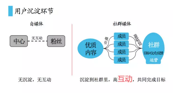显然地,社群媒体产出的内容有自己的智慧和汗水,你还会对它产生厌倦感吗?正所谓,爱过,努力过,就算是一坨屎,它也是自己辛辛苦苦吃了饭精心拉出来的。 比如李笑来社群,他与群成员共同总结学习,从而一同创作书籍《七年就是一辈子》。这样的内容,群成员是不是会主动分享?又如干货帮社群,内容来自每次嘉宾的分享,这自然也解决了不可持续的问题。 ◆ ◆ ◆ 二、内容传播 我们知道,自媒体的运行模式简单,只有生产(比如写)和传播(比如看)的过程,这导致其传播渠道单一,只能依托于某些平台才能维持一定的传播量。一旦脱离某个平台,或者该平台活跃度下降,那么其生产的优质内容则无法得到有效传播。 此外,自媒体由于没有社群来沉淀用户,缺乏有效的变现模式,往往对内容版权十分看重,一般只愿意让内容在自有平台上传播,而不欢迎其他渠道的分享。比如很多自媒体人是禁止其他机构和媒体转载自己内容的,因为这样势必会分散该自媒体本身的流量。而这对于靠流量来卖广告变现的自媒体人来说,无异于抢夺饭碗。 从以上两点我们可以看出,自媒体在内容传播上是受限的,更是无法形成全网传播的。我们再来看看社群媒体的情况。 社群媒体的内容是流量的入口,而社群即是流量的沉淀。什么意思?即社群媒体产生的内容在群成员间便可形成有效的传播,而不必仅仅依赖于其他的媒体平台。 为什么?我们回归到社群媒体的运作模式,其内容的生产由群成员共同完成,内容的传播也在群成员间完成。社群媒体的群成员即粉丝,即用户。所以,相比于自媒体来说,社群媒体的传播渠道更丰富,而且十分高效和精准。 更加可贵的是,社群媒体在内容上可以形成全网传播,它不像自媒体那样必须死守内容以求变现。因为一旦形成社群,社群媒体的变现模式是多种多样的。社群媒体关心的不是 copyright,而是 copyleft,它并非靠内容本身变现,内容主要是为形成影响力,组建社群。因此,只要注明出处,社群媒体的内容是十分欢迎他人传播的,所以容易形成全网传播。 比如超级社群罗辑思维,由于优酷当年阻止其加广告,使得他转而积累用户形成社群。如今,罗辑思维只要有内容产出,在其社群内部就能形成高效和高量的传播,就连卖东西,其社群的会员都是争先恐后。这就是社群媒体在内容传播上的魅力所在。 ◆ ◆ ◆ 三、用户沉淀 相对于自媒体来说,社群媒体在内容的生产和传播上都采取了一种更为持续和有效的方式,然而社群媒体区别于自媒体最本质的差别不在于此,而是用户沉淀。这才是社群媒体的核心所在。 正如我们所知,自媒体只有粉丝积累的过程,没有用户沉淀的过程。用户沉淀靠的是社群,而社群是社群媒体才有的组织形式。 在自媒体中,内容是一切的核心,它是自媒体的目的所在,也是价值所依,自媒体需要靠内容来变现。所以说,自媒体由于没有社群的概念,自然不会去关心用户的沉淀。 而在社群媒体中,内容只是手段,它是用来吸引用户、从而组建社群的工具,社群才是价值核心。与自媒体想尽办法增粉不同,对于通过内容吸引过来的用户,社群媒体往往自设规则和门槛,符合规则的人才可以沉淀进社群进行共同创造,不符合规则的人则果断不带你玩。也就是说,社群媒体通过内容来吸引用户,再通过规则来筛选用户。 为什么要自设门槛阻碍群成员数量的发展?原因很简单,通过一套规则体系筛选出来的用户往往是自有用户,而且是高质量用户。对于今后社群内容的生产,以及围绕社群的商业变现来说,这是基本前提和保障。 很多运作得很好的收费社群,收费即是一个门槛。比如李笑来的 “共同成长” 社群,会员费已经达到 7000 元;又如 ScalersTalk 的共同学习社群,入群每人得交 1000 块,然后共同坚持和学习一件事情,一同成长;还有知名企业家社群正和岛,看其入群的规则,更是远非单纯的交钱那么简单: