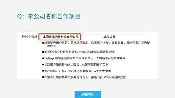 不管哪一种情况,在我看来核心的本质在于没弄清每一类运营工作对应的关键数据是什么? 不管数据(绝对值/相对值)好不好看,强烈建议大家是把每一项运营经历的核心业绩都数据化出来,这样至少可以通过简历证明你是一位目标很明确的运营。 这种问题容易出现在从事运营工作有些年头的小伙伴,如果你把所有工作经历都写上,给人感觉是除了技术似乎什么都会了,要不去创业做CEO好了。 出现这种情况我的建议,可以是针对不同运营岗位写简历,这样更能够体现自己的特长。作为知识点的补充,这里参考小贤自身的发展情况,分享运营特长打造的三个阶段: ① 入门学习运营技能。 整个人处于混沌状态,对什么都有新鲜感,以致于什么都会一些,可往往这个时候不太容易出成绩。 ② 中阶摸索运营特长。 运营新鲜度过后建议要选一个运营方向深入学习,这个时候最好到成熟的互联网企业,这样会有人指引着做某一方向的运营工作,可以把入门阶段学到的技能有效的组合起来。 ③ 高阶实践运营特长。 能够独立运营项目,努力打造出属于自己的案例,对产品产生可衡量的实际价值(收入/用户量/留存…),这样你的特长就更有说服力了。 虽然我在《跟小贤学运营》网易云课堂上,推荐大家可以参考想应聘的岗位要求文案来包装自己的经历。但是咱不能把岗位说明全搬到简历那去了,这样虽然看过去能力匹配了,但是丝毫看不到证明可以胜任这个岗位的经历了。 在帮学员看简历过程中,我发现有人在写运营经历时拿公司名称来做产品(项目)命名,其实这个是非常不合理的,因为很多互联网公司的名称和产品名是分开的。 比如下边这个“上海西示网络科技有限公司”,如果求职者不写出具体的产品名称,谁也不会知道她是在周末去哪儿工作,也正是因为她没把被人熟知的产品名称写出来,她的简历被pass的可能性就更大了。 在写简历的时候如果有一个对自己的概括性描述(自我评价),能够方便面试官快速的扑捉到你的亮点,可大部分人写自我评价是这样的: “本人性格热情开朗,待人友好,为人诚实谦虚。工作勤奋,认真负责,能吃苦耐劳,尽职尽责,有耐心。具有亲和力,平易近人,善于与人沟通。” 为了让自我评价发挥该有的价值,建议结合岗位要求来写自我评价,同时最好要有的实际的工作来证明它;如果是面试垂直产品的运营,还可以把自己与之相关的兴趣爱好写上。 如果你是去面试快看漫画编辑岗位,就可以这样写自我评价: “二次元文化重度用户,目前已经集齐海贼王全套公仔。有两年的编辑工作经验,擅长主题策划、文字资料整理和编辑。 有一年多的互联网公司内容开发和运营工作,培养了项目管理思维,对结果数据分析的复盘能力。 当你的工作经历超过两年后,尽量不要再出现高校社团经历了,这样会显得自己在没多少实际性的成长。如果实在要写可以描述就是跟你所希望从事的运营岗位是相关的学校社团经历,或许帮知名企业在高校里做的项目。 说到学校社团经历,顺带提一嘴学历和专业的问题,除非是专业和运营的岗位有相关性,否则在校专业涉及到的具体科目也别在简历上呈现,这一点意义都没有。 说的再多都不如分享一个自己曾经运营过的案例具体。如果你希望从事的是内容编辑工作,那就在附件中加上你的图文案例,如果面试的是活动策划工作,那就把过往的活动策划书和活动页面一并同简历发出…… 另外,我觉得不一定数据要很好才能够叫做案例,毕竟数据好坏也不是运营一个人能够决定,其实有亮点就可以了。 喜欢学习是件好事,但是我们不能把它当作工作经历来看待,然后罗列一堆的课程和干货文章。建议可以是把学习后的改变和实践效果,这样会显得更牛逼,体现你的学习能力。 写好简历是一个非常好的自我剖析和整理的过程,对于非名校毕业的学生,尤其是专科的学生,我的建议是在投递简历时最好能够附上一封走心的求职信或者运营分析报告,这样咱们的简历通过率又会提升不少。 最后,送大家一句话:“成长的路不好走,运营小伙伴们要记得坚持!” 作者 / 陈维贤 来源 / 公众号 运营研究社(ID:U_quan) |
