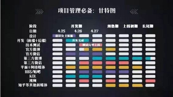 活动运营与用户运营 这部分的术语,常见于 App 运营领域,下面只选取新媒体运营相关的内容: 39. 费用预算 通常分为奖品费用和推广费用,在设计活动时,常做两种费用预算,最低费用预算和最高费用预算 40. 时间推进表 活动进度的时间表,明确时间节点、责任人、产出成果,建议使用甘特图设计。 41. 活动转化率 实现活动目标的用户数和参加活动的用户数之间的比率。 示例: 活动目标是让用户购买课程,有 1000 名用户参加活动,其中 100 名用户购买课程,活动转化率为 10% 。 42. 复购率 一段时间内,重复购买产品的用户数量与在该时段内购买过产品的所有用户的数量之间的比率。 示例: 100 位用户购买了产品,20 位用户重复又购买了同款产品或其他产品,则重复购买率为 20% 。 43. 复盘 活动结束后,回顾这个活动,总结经验和教训。 44 A/B测试 把不一致的意见和想法每一个都拿出来快速验证,得到真实的用户反馈,反馈最好的就是最终选择。 45. 涨粉 用户数量增长,与之对应的是“掉粉”。 46. 用户粘度 用户使用某新媒体平台的频率,频率高,则用户粘度高。 47. 潜在用户 没有成为用户的、待挖掘的目标人群。