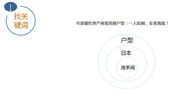 好的标题,传达的信息精准,你自己都会觉得朗朗上口,有趣又有用。 你是怎样起标题的? 是火急火燎的接到需求后,疯狂戳开自己关注的微信公众号查阅? 点开各类创意网站,寻找顿悟? 坐立不安,抓耳挠腮的苦想? 如果如上所述,只能说明,今晚你想加班。 当然,想必你的运营生涯中也是起过几个自己念念不忘的标题。 好的标题,传达的信息精准,你自己都会觉得朗朗上口,有趣又有用。 回顾一下,其实当中皆有共因。 标题应该这样起! 一个好的标题就是一篇故事,有章可循。就像排队的餐厅不会难吃到哪去。历经七道工序——找关键词、造句、句子优化、对比筛选、编辑优化、第一句话、反馈优化,打造出有用且有趣的标题既是终极追求。 1、找关键词 通常起标题,要么根据正文内容起标题,要么把标题作为核心,拓展内容。其中内核,一定是由三两个关键词撑起的。 找准关键词,就能完美的切合实际用途,准确传达我们需要告知的信息,既为有用。 正如,草莓可叫士多啤梨、凤梨草莓、红莓、地桃。不同的说法除了贴合不同地区的民俗,迎合喜好外,一定程度上可以迷惑他人,提升逼格。 更显眼的例如:海带就海带,讲什么昆布;樱桃和车厘子,大家都无云泥之别。 由此可见,一旦换个说法,应用在不同的场景里。就可迷惑众生,抬高价格了。 所以通过此工序,用不同的说法,造成不同的效果,或严谨、或逗趣、或童真,既为有趣。 那么从此开始,我们选取之前非常有趣的一个标题进行实操,找出关键词。 例: 年度最烂房产再现奇葩户型:一人如厕,全家围观! 选出关键词:户型,日本,洗手间。 2、造句 标题的本质既是一个句子,或长或短。通过关键词进行拓展,就是我们所需的标题。 通常,我们年少时的学习让明白。句子有陈述句,疑问句,祈使句,感叹句。每种大类下,还有众多细分的形式展现。如同疑问句之下还有,反问句,是非问等等。 当然,通过关键词造句,关键词不必全部使用,能将必不可少的信息传达就行。 通过实践,以关键词:户型,日本,洗手间。不同类型的句子传达的感情显而易见。 例: