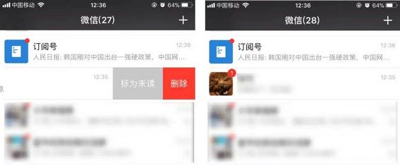 05、设置未读消息 不知道大家有没有过这样的经历:当你接收到一条微信消息,没有时间去回复,想着等一会后再回复,但后来就忘记了…… 为了避免这种情况,可以将已度的消息设置成未读状态,这也是一种更直观的提醒事项。 在聊天界面,将需要标记的信息进行左滑动(安卓需长按),点击「标记未读」,这样在头像右上角会出现“未读”的红点标记。等你在忙完工作后再去看就不会错过这些消息了。