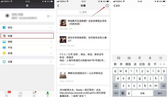01.微信记笔记功能 是否大多数小伙伴和我一样一直将微信「收藏」仅用在将语音或者文章长按进行收藏的功能上面。 现在微信的「收藏」功能可谓是十分强大,除了刚刚说的基本功能外,还可以在「收藏」里面记笔记。点击「我」-「收藏」,右上角的「+」号,就能添加笔记。