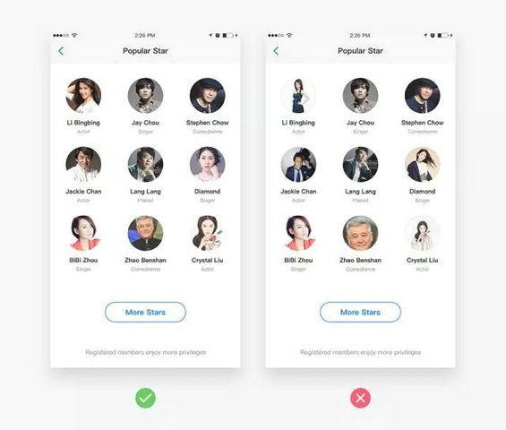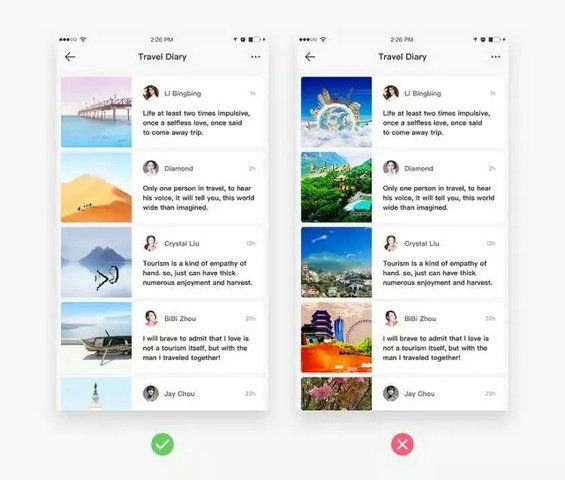 24、运用真实的信息填充你的设计 经常看到一些设计稿整个界面都是一样的配图,胡乱输入的文案,看起来显得非常的不专业。为了降低视觉落地的差值,我们在设计的时候尽量运用真实有效的信息去填充我们的设计稿,在提案的时候才能给决策者一个还原真实场景的有效方案。