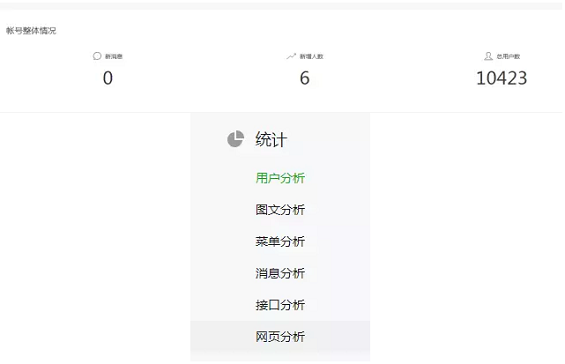 首先打开微信公众号的后台,会看到很多的数据,我们重点关注后台左边的统计栏: