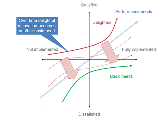 举个例子来说,自从出了滴滴打车之后,滴滴的概念就很火,很多时候介绍一个产品,只要以滴滴开头,别人就能明白这个产品大概的模式,很多人都提出过滴滴车位类似的模式,需要车位的人提出需求,有车位空闲的人接单之后有偿将车位出让给需要车位的人使用。但目前为止,没有哪家做出像滴滴一样有名气的产品,原因就在于这个产品制定之处,缺少用户的详细划分,只考虑到了需要停车人,对出让停车人位的用户考虑不全,并且忘记考虑一个重要的用户——小区保安。小区保安如果不准外来车辆进来,那么改模式将无法进行。 2.2 痛点 痛点是产品思维里最常见的分析点,一个产品是否能够成功,首先要看它是否解决了某类用户的痛点需求。 很多产品解决的痛点并不痛。比如停车和洗车相比,停车是真正的痛点,而洗车,经过去年的一段风光之后,几乎全军覆没。当你免费的时候,有大量的用户使用你的产品,来洗车,但一旦你想要盈利的时候,用户马上就会选择成本更低的方式。 当你要考虑一个产品是否需要增加一个新的需求时,不应该为用户想不想要这个功能,而应该问没有这个功能可不可以。 东京理工大学教授狩野纪昭发明的KANO 模型能够很好的诠释痛点需求是否痛。